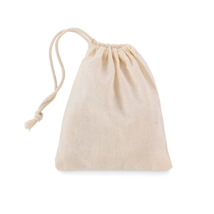Mini set de bowling din lemn de pin, prezentat în săculeț din bumbac cu cordon. Include 6 popice și 1 bilă.